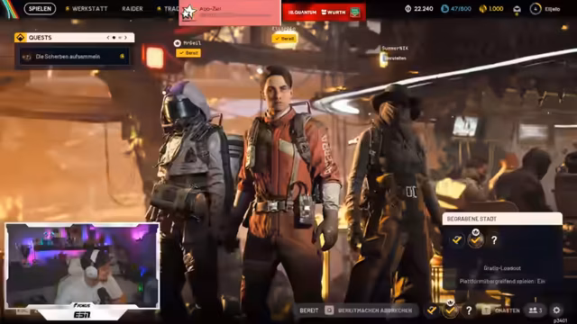 04:24:37Zu Beginn der Runde werden die grundlegenden Spielprinzipien von Stellar Montes erläutert. Das primäre Ziel ist es, erfolgreich in eine Map einzudringen und mit möglichst viel Beute wieder auszusteigen. Hierfür ist es entscheidend, zuerst normale Leben und den Schild aufzufüllen. Wichtig ist das ständige Sammeln von Ressourcen wie Werkbänken und Waffenstationen, um Ausrüstung herzustellen oder zu verbessern, was für den weiteren Verlauf der Runde unerlässlich ist. Die Erfahrungsrunde soll Neulingen das Gefühl für das Spiel vermitteln.
