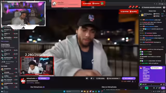 03:30:32Der Streamer stößt auf einen Bär und braucht dringend jemanden mit guter Zielgenauigkeit, um das Tier zu erlegen. Ein Mitspieler namens Willi erhält die Aufgabe, mit einer Netzkanone eine Ziege zu fangen, was zu einer aufreibenden, mehrminütigen Jagdszene wird. Nach mehreren verpassten Schussmöglichkeiten und verpassten Chancen wird die Ziege schließlich gefangen. Diese Aktion dient nicht nur der Nahrungsbeschaffung, sondern auch als gemeinschaftliches Highlight, das trotz anfänglicher Schwierigkeiten zu einem Gelingen führt und die Teamdynamik stärkt.
