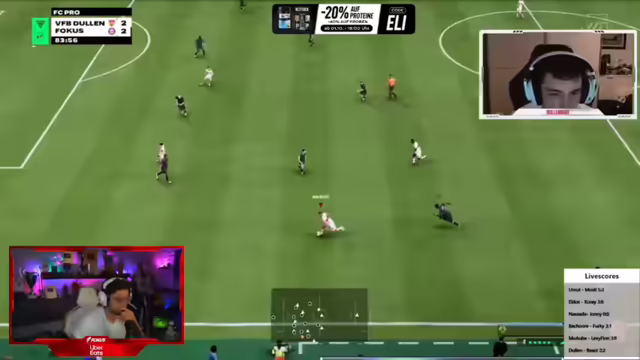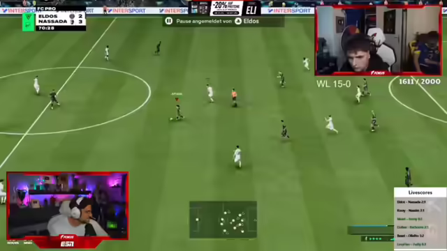 02:27:32Es wird über die hohen Ping-Probleme von Nassim gesprochen und spekuliert, dass er aufgrund dessen nach Deutschland kommen müsste. Die im Turnier häufig verwendeten Formationen 4-2-3-1 und 4-4-1-1 werden thematisiert. Eldos zeigt eine starke Leistung und gewinnt mit 3-0 gegen Umut. Es wird die Frage aufgeworfen, wie Umut, der kürzlich einen E-Sport-Cup gewonnen hat, in diesem Turnier so schlecht abschneiden kann. Der Fokus liegt auf den laufenden Spielen, wobei Levi Finn gegen Ollietto spielt und Mo gegen Dullen antritt. Der Streamer äußert sich zu den Emotionen der E-Sportler und bemerkt, dass viele keinen Ton haben und sich voll auf das Gameplay konzentrieren. Es wird eine Wette abgeschlossen, wie oft Levi Finn in den nächsten zwei Minuten blinzelt. Nasada führt weiterhin und Musti liegt 1-0 gegen Nasada in Führung.