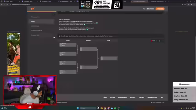 04:38:50Es wird über ein zu spätes Absetzen im Spiel gesprochen. Batschore gleicht zum 4:4 aus. Es wird über das Ausscheiden von Fuki und Eldos im Viertelfinale gesprochen. Beide Spiele sind sehr knapp. Dullenmaik führt mit 6:2. Dullenmaik bekommt keine Luft mehr und Nassim gleicht zum 7:7 aus. Dullenmaik erzielt das 8:7. Es wird festgestellt, dass Batschore im Finale steht. Nassim ist zu hektisch. Dullenmaik gleicht zum 7:7 aus. Dullenmaik erzielt das 8:7. Batschore ist im Finale. Es wird über den Anschluss-Bug diskutiert. Dullenmaik führt mit 10:8. Batschore ist im Finale. Es wird über den Anschluss-Bug diskutiert. Faro raided den Stream. Levi ist rausgeflogen. Batschoge ist im Finale. Es wird über Testspiele vor Sonntag gesprochen.