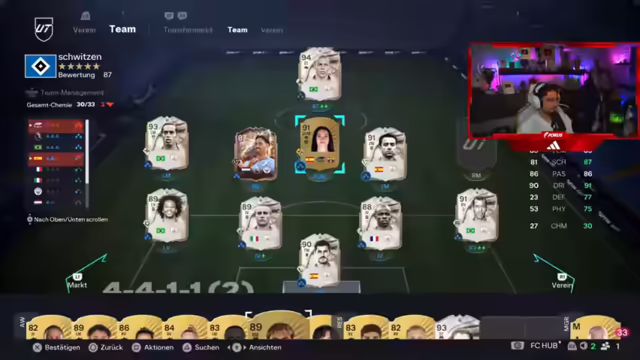 00:50:08Es wird eine kleine Anekdote über Batschore erzählt. Der Streamer und Zitten haben im Auto darüber geredet, dass es einfacher geworden ist, 15-0 zu holen, aber man trotzdem viel grinden muss. Er erwähnt eine Insta-Story, in der er sagte, dass die Coins nicht alles sind, aber das Team ihm geholfen hat, 15-0 zu holen. Er erzählt, dass sein Mia Hamm-Team, mit dem er 13-2 geholt hat, mehr wert ist als das Team, mit dem er 15-0 geholt hat. Apropos Mia Hamm, der Drachenkrieger ist gegangen und dafür sind jetzt der Pillermann und Mia Hamm vorne. Umut wird begrüßt, der lange nicht mehr gesehen wurde. Er erzählt, dass er seit FIFA Release nicht mehr beim Friseur war, was der Streamer lobt. Umut hat keine WL gespielt, da es sich für E-Sportler nicht lohnt. Er hat stattdessen Cups gespielt, darunter ein Turnier von einem Coach, zu dem aber nicht die besten Spieler eingeladen waren. Mo sagt, dass Umut heute Favorit ist. Umut spielt gegen Nassim, und der Streamer sagt, dass Nassim die Gruppenphase überstehen muss, damit er ihn auf dem Schirm behält.