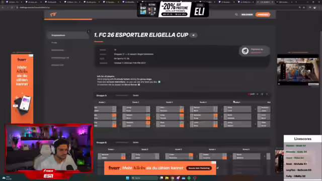 00:58:56EliasN97 spricht über die eSport-Goats im FIFA-Bereich und erwähnt Manu Batschore und Dossari als Top-Anwärter. Er betont, dass Batschore aufgrund seiner zwei Weltmeistertitel hervorsticht. Währenddessen laufen die Vorbereitungen für den Eligella Cup, und EliasN97 bereitet die Gruppen vor, wobei er Nasada, Umut, Eldos und Koray in Gruppe A einteilt. Er erwähnt auch, dass Partner das Preisgeld zur Verfügung stellen und Rabattcodes verfügbar sind. Kurz vor dem Start des Cups erklärt er die Regeln und bittet die Mods, bei Fragen der eSportler im Chat zu helfen. Er kündigt ein Preisgeld von 2000 Euro an, wobei der erste Platz 1500 Euro und einen Pokal erhält. Die Teilnehmer dürfen ihre Main-Accounts mit allen Inhalten nutzen. Eine Ausnahme bildet Nassim, der keinen Vertrag hat und als einer der wenigen ohne eSport-Vertrag gilt. Er darf einen Account von jemand anderem nutzen, wobei das Team einen Wert von 4 bis 6 Millionen haben sollte. EliasN97 erklärt die Regeln für Punktgleichheit und betont, dass bei drei gleichen Punkten die Tordifferenz zählt.