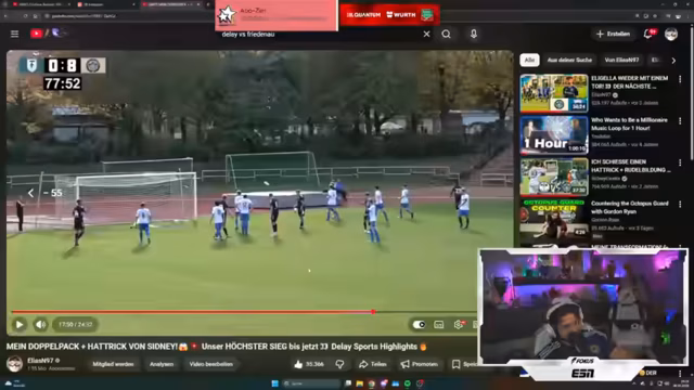 00:13:54Ein zentrales Thema ist die Zusammenarbeit mit Hertha BSC, insbesondere im Nachwuchsbereich. Viele Spieler der Icon League erhalten Anfragen von höherklassigen Vereinen, meistens aus der Oberliga, weil sie in Videos eine überdurchschnittliche Leistung zeigen. Der Fokus liegt auf dem Spieler Palli, der erst aus der Kreisliga C stammt, aber bei Delay Sports überzeugen konnte und nun in einem Freundschaftsspiel für Hertha BSC gegen den Halleschen FC spielt. Der Streamer berichtet stolz von Pallis starkem Auftritt in der Regionalliga und stellt klar, dass der Verein keine Steine in den Weg legen werde, sollte ein Wechsel bevorstehen.