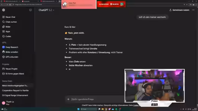 00:42:02Ein großer Teil des Streams dreht sich um das aktuelle Trainingslager in Dubai. Der Streamer beschreibt das luxuriöse Umfeld auf einer Yacht und den teuren Hotelkomfort. Er kritisiert jedoch, dass die Vorbereitung für die Rückrunde eher ein teurer Urlaub als ein effektives Training wirkt, da der Haupttrainer Panne nicht anwesend ist und stattdessen nur Teambuilding-Aktivitäten stattfinden. Neben den sportlichen Aspekften werden auch private Erlebnisse wie eine Bootstour, Paddle-Tennis-Spiele und humorvolle Auseinandersetzungen mit den Teamkollegen geschildert.