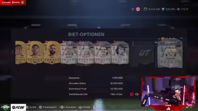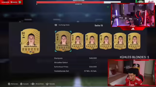 07:47:45Nachdem die 25K-Packs geöffnet wurden und viele enttäuscht sind, wird eine kurze Pause eingelegt, um auf alle zu warten. Einige haben noch keinen Walkout gezogen und hadern mit ihrem Pech. Andere haben bereits Glück gehabt und warten gespannt auf die nächste Runde. Es wird überlegt, die mobile Cam für Zwischenstände bereitzumachen. Die 35K-Packs stehen als Nächstes an, doch die anfängliche Euphorie ist etwas gedämpft. Nach der Auswertung der 25K-Packs stellt sich heraus, dass Hamed mit einem Wert von 24.500 klar führt, gefolgt von anderen mit deutlich niedrigeren Werten. Die 35K-Packs sollen nun die Wende bringen, doch der Start verläuft schleppend. Es hagelt Nieten, und die Rufe nach einem Walkout werden lauter. Einige ziehen immerhin Barcola für 15.000. Die Hoffnung auf bessere Karten in den 35K-Packs bleibt bestehen, aber die anfängliche Begeisterung hat einen Dämpfer bekommen. Es wird gehofft, dass jemand einen richtig teuren Spieler zieht, um die Stimmung aufzuhellen.