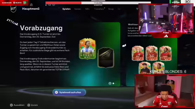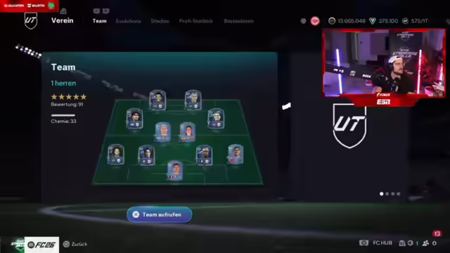 00:11:59Der Stream beginnt mit der Vorstellung eines beeindruckenden Teams, bestehend aus Legenden wie Maradona, Pelé und Ronaldo, sowie aktuellen Stars wie Mia Hamm und Puteas. Es wird spekuliert, dass der Wert dieses Teams bei etwa 37 Millionen Coins liegt. Der Streamer berichtet von einem erfolgreichen 'Sherftag', im Gegensatz zum Vortag, der von Respektlosigkeit geprägt war. Er äußert den Wunsch, die Streaming-Villa mit 50 Millionen Coins zu verlassen und erwähnt, dass er noch einen zweiten Code hat. Es wird über das Pech beim Ziehen von Spielern geklagt, insbesondere im Vergleich zu anderen, die wertvolle Spieler wie Sophia Wilson und Hakimi gezogen haben. Trotz des Einsatzes von 70.000 FIFA Points blieben die Ergebnisse mager. Es wird kurz überlegt, ob man sich Zlatan Ibrahimovic ins Team holen soll und die Bedeutung von Pass-Stats im Spiel betont. Abschließend wird der erste Walkout des Tages, die Binia, gefeiert.