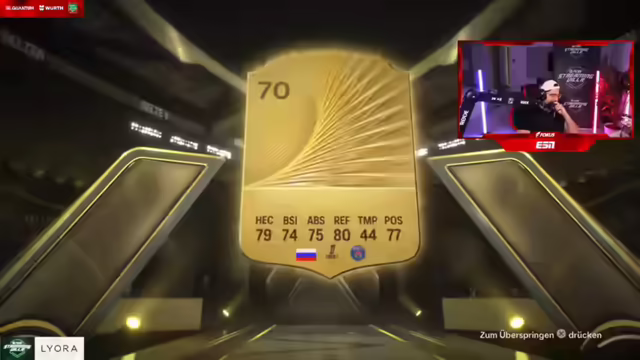 07:55:18Die Teilnehmer öffnen nun die 45K-Packs, in der Hoffnung auf bessere Ergebnisse. Doch die Enttäuschung setzt sich fort. Viele ziehen weiterhin nichts Wertvolles und die Stimmung sinkt. Es wird gefordert, dass endlich jemand einen Spieler über 150K zieht, um die Situation zu retten. Einige ziehen zwar Kenan Yildiz in Form, aber das reicht nicht, um die allgemeine Unzufriedenheit zu vertreiben. Schließlich zieht jemand Pacho, der auf etwa 150K geschätzt wird, was für etwas Aufregung sorgt. Trotzdem bleibt der allgemeine Eindruck bestehen, dass die 45K-Packs nicht besonders ergiebig sind. Die Teilnehmer sind frustriert über die schlechten Ergebnisse und die fehlenden Walkouts. Die hohen Investitionen in die Packs scheinen sich nicht auszuzahlen. Die Stimmung ist angespannt und die Rufe nach besseren Ziehungen werden lauter. Anschließend werden 70K Packs geöffnet, aber die Ergebnisse sind weiterhin enttäuschend. Viele ziehen keine Walkouts und sind frustriert über ihr Pech. Die hohen Preise der Packs stehen in keinem Verhältnis zu den gezogenen Spielern. Die Stimmung ist auf einem Tiefpunkt, als die Teilnehmer realisieren, wie viel Geld sie in Packs investiert haben, ohne einen entsprechenden Gegenwert zu erhalten.