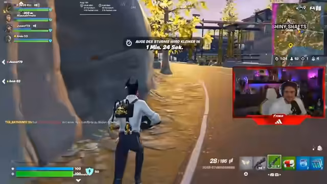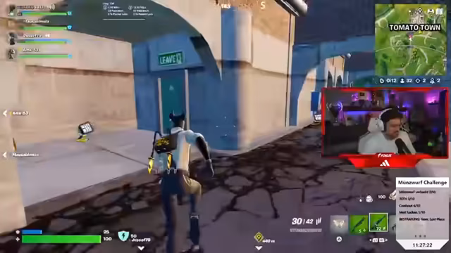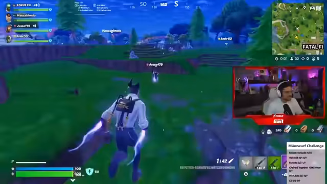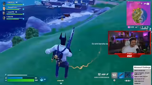 12:09:10Die Teilnehmer geraten in eine Verwirrung, wie viele Siege sie bereits in Fortnite erreicht haben. Es gibt unterschiedliche Angaben und Uneinigkeit darüber, ob alle Siege auch 'gegönnt' wurden. Das führt zu Frustration, weil sie nicht genau wissen, wie viele Challenges sie bereits gemeistert haben und wie viele noch ausstehen. Auch die Zählung in anderen Spielen wie Fall Guys ist unklar.