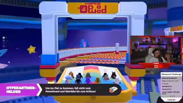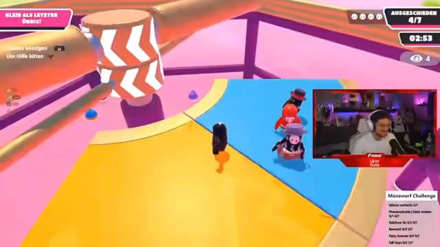 14:29:35Nach intensiven und emotionalen Kämpfen erreicht die Gruppe das Finale der Münzwurf Challenge. Die Spannung ist hoch, da nur noch wenige Gegner übrig sind. Die Streamer konzentrieren sich voll auf das Spiel und müssen alle ihre Fähigkeiten einsetzen, um zu gewinnen. Es kommt zu dramatischen Momenten, in denen das Schicksal der Gruppe auf dem Spiel steht. Der Höhepunkt ist erreicht, als sie schließlich den Sieg einfahren und ihre Freude über die Erfolge teilen können.