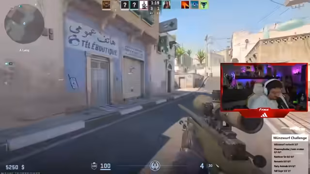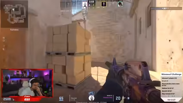 10:29:54Während des Streams treten wiederholt technische Hindernisse auf, die die Teilnehmer frustrieren. Gleichzeitig versuchen sie, Counter-Strike zu spielen, aber es kommt zu Missverständnissen und Koordinationsproblemen im Team. Die Teilnehmer diskutieren über Taktiken und Waffenauswahl, während sie gleichzeitig mit den Herausforderungen der Münzwurf Challenge beschäftigt sind. Es ist ein Wechselspiel zwischen Spielstrategie und der körperlichen Challenge.