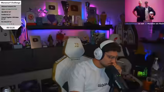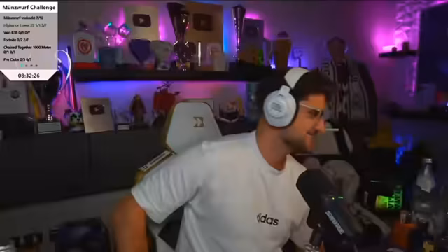 00:20:00Die Münzwurf-Challenge steht kurz bevor, nachdem sie lange gefordert wurde. Es werden 14 verschiedene Spiele ausgewählt, darunter Phasmophobia, Rainbow Six, Party Animals, Fall Guys, Valorant, League of Legends, GeoGuessr, Wer wird Millionär und Schlafen einmal. Bei manchen Spielen wird ein zusätzlicher Spieler benötigt, der nicht professionell sein sollte. Der Streamer äußert Bedenken bei bestimmten Spielen wie Warzone, bei dem Stream-Snipern ein großes Problem darstellen, oder Fortnite, bei dem die Serverregion gewechselt werden muss, um Snipern zu entgehen. Für Valorant wird ein zusätzlicher Spieler benötigt, da Yumi nicht im Team ist.