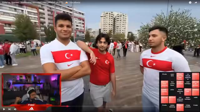 01:27:49Es wird über ein VIP-Ticket berichtet, das Kenan Yildiz organisiert hat, wodurch ein Platz hinter der türkischen Ersatzbank ermöglicht wird. Die traditionellen Brötchen im Stadion werden probiert. Es wird die Frage aufgeworfen, ob der Adler im Video den Verein repräsentiert. OneFootball-Ergebnisse werden erwähnt. Es wird über die Reaktionen auf Müll-Dür im Discord diskutiert und die besondere Atmosphäre des Spiels Türkei gegen Spanien hervorgehoben. Es wird die Hoffnung geäußert, dass Mert eine ähnliche Fanbase für sein Icon League Team aufbauen kann. Abschließend wird die beeindruckende Atmosphäre im Stadion beschrieben, bei der die Zuschauer ihre Handylampen einschalten. Es wird auch die WM-Qualifikation und die Situation der deutschen Nationalmannschaft thematisiert.