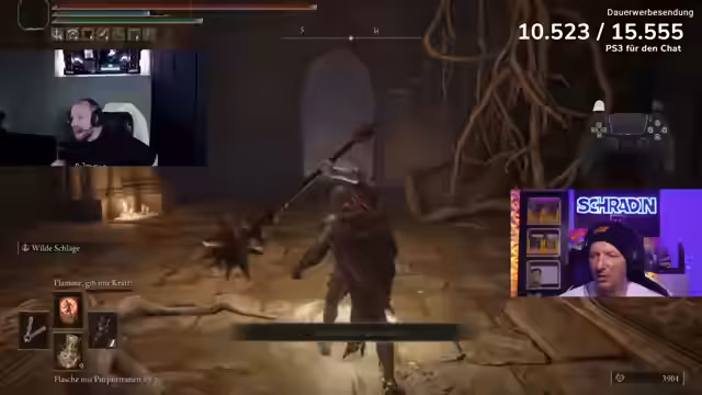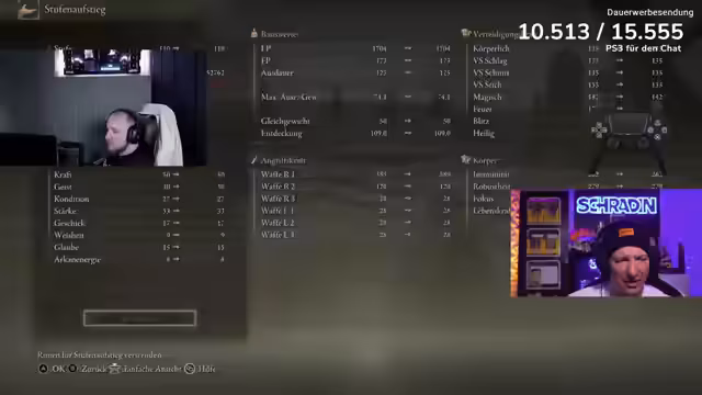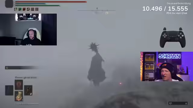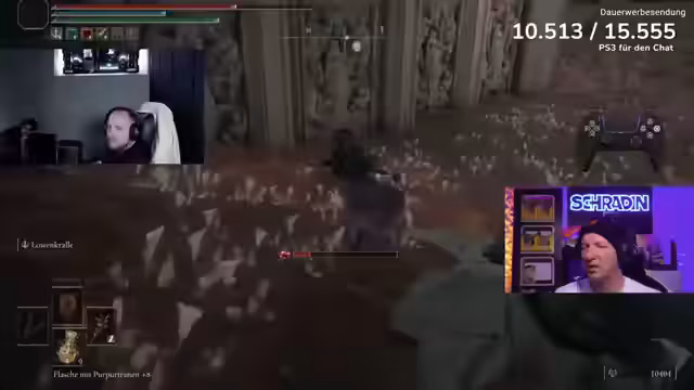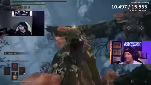 02:30:37Der Streamer kommentiert das Gameplay von Schradin in Elden Ring. Er erwähnt dessen Fortschritte, besonders bei Krittreffern und der Bewältigung von Bosskämpfen. Trotz Müdigkeit zeigt Schradin gute Leistungen. Der Streamer ist beeindruckt von dessen Fortschritt und Motivation, besonders bei dem Kampf gegen Marlenia. Es wird auch über Waffen-Upgrades und den Weg zum nächsten Boss gesprochen.