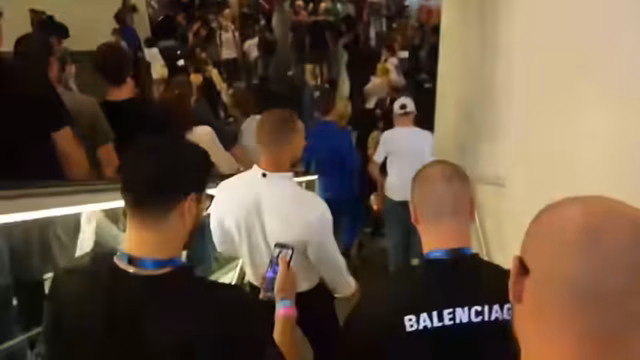 00:09:39Fünf Sicherheitskräfte eskortieren das Team durch die Hallen. Der Streamer erzählt humorvoll, dass der Schutz vor seiner Stalker-Mutter notwendig sei. Die Gruppe sucht nach einer bestimmten Yu-Gi-Oh-Figur, zuerst erfolglos. Die Kameraführung ist anspruchsvoll, und der Streamer bittet den Kameramann um stabile Aufnahmen.