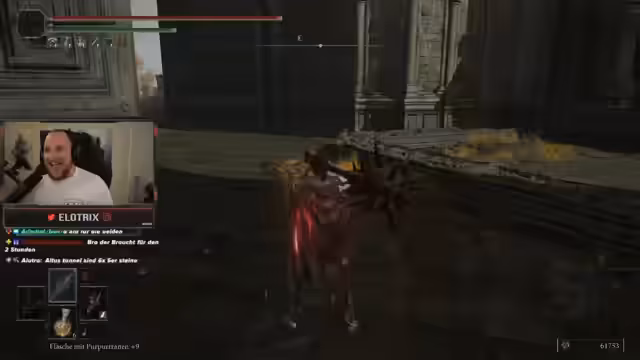 01:42:17Elotrix diskutiert über die Goldene Hellebarde und bezweifelt, dass Schradin das Springen hinkriegt. Er hält den Gotti-Preis für verflucht, da er nach Reichweite und nicht nach Gaming-Skill geht. Er findet Reapers oder Danny wären eher der Gotti. Elotrix braucht einen Screenshot von der Invader-Quest, da er die noch nie gemacht hat. Er glaubt, neu starten wäre scheiße, reskillen wäre okay, aber Schradin hat die Steine schon benutzt. Elotrix nimmt die Stachelkeule mit Felsenklinge ins Visier. Er erklärt, dass Schradin sich im Altus-Plateau verirren wird. Elotrix erklärt, wie man den NPC invadet und tötet. Er hat keine Talismane und nix. Elotrix wusste nicht, dass der Invader einen Sechserstein gibt. Er fragt sich, ob der Invader reingepatcht wurde, damit man die Questline offline machen kann. Elotrix erklärt, dass Schradin dreimal an dem sterben und ihn einmal besiegen muss. Er erklärt, wo man die Jungfrau finden kann, um die Quest abzuschließen. Elotrix erklärt, dass alles machbar ist, aber es dauert alles. Er hat die Questline von ihm noch nie gemacht. Elotrix erklärt, dass man den Vogel braucht, um Runen zu farmen. Er erklärt, dass man den Skarabeus holen muss. Er hat vier Glaube zu wenig und muss einen Glaubentalisman holen. Elotrix lernt, dass man die weiße Maske auch anders bekommen kann. Er überlegt, ob er Schradin den Talisman für physische Resistenz holen soll. Er erklärt, dass man auch holen könnte, dass er besseren Heal hat. Elotrix erklärt, dass God of War eines der besten Spiele ist. Er erwartet die PlayStation 6 in zwei, drei Jahren. Elotrix und Eli haben noch kein Datum für ihren Run gefunden. Er erklärt, dass man in COD mogeln muss, um normale Lobbys zu haben. Elotrix hat die zweite Staffel von House of Dragons geschaut und ist gespannt auf Staffel 3. Elotrix erklärt, dass die Gegner Talismane ausgerüstet haben. Schradin muss nur seine Waffenfähigkeit benutzen. Elotrix erklärt, dass Schradin Runen farmen muss. Er muss mindestens 10 Level mehr im Leben haben. Elotrix erklärt, dass Schradin tankiger werden muss.