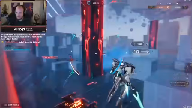 05:25:39Der Streamer wechselt zum 6-gegen-6-Objektiv-Modus 'Operation Verge', in dem Teams Plattformen einnehmen und Aufgaben erfüllen müssen. Er beschreibt visuell beeindruckende Szenarien und die Herausforderungen, die entstehen, wenn gegnerische Teams gleichzeitig angreifen. Er erwähnt die technischen Aspekte des Spiels wie Ping und Netzwerkprobleme. Auch geht er auf die verschiedenen Mechs und deren Fähigkeiten ein, wie zum Beispiel den Healer-Charakter Pinaka.