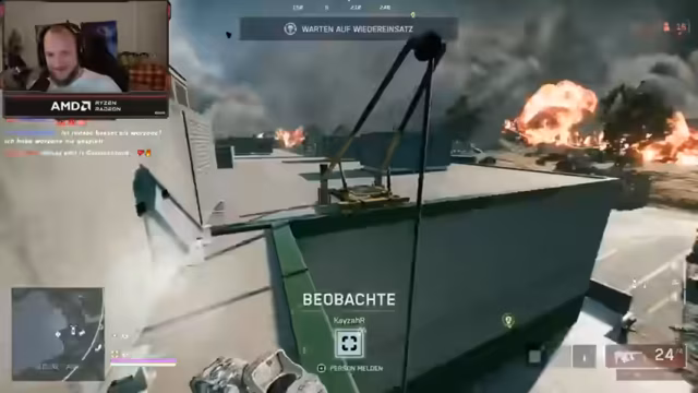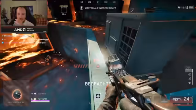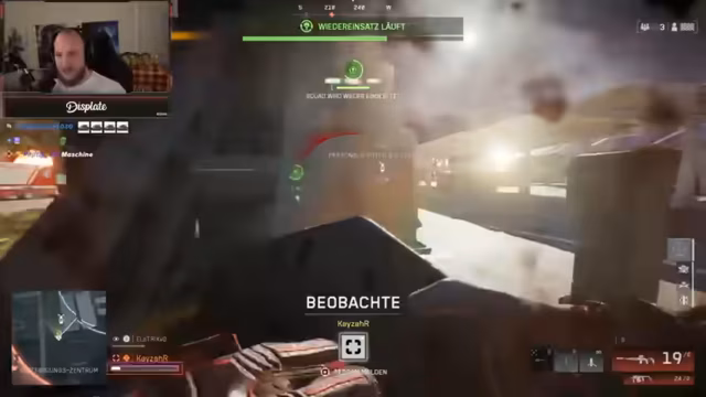 03:51:13Der Streamer experimentiert mit einer modifizierten M14, die nun mehr Rückstoß hat, aber Munition verwendet, die die Gesundheitsregeneration der Gegner verzögert – eine Taktik, die er als „sehr ehrenlos“ bezeichnet und die auch im Multiplayer frustrierend sein kann. Er wundert sich, warum ein Teammitglied eine MP mit Taschenlampe spielt, was auf fehlende Aufsätze zurückgeführt wird. Der Streamer erklärt, dass er seit jeher Controller-Spieler ist und Maus und Tastatur komplett neu lernen müsste, wobei League of Legends das einzige PC-Spiel ist, das er einigermaßen beherrscht. Er erwähnt, dass er League of Legends seit März dieses Jahres „gerage quittet“ hat, da er das Spiel nicht mehr sehen konnte. Währenddessen diskutiert er über die perfekte Positionierung der Gegner auf Dächern und die Unkenntnis der Häuser auf der Karte.