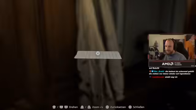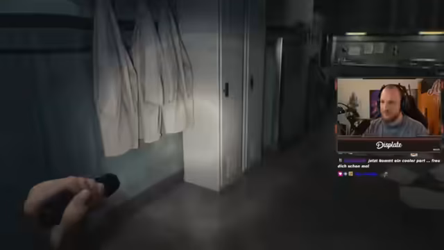 01:23:52Grace wird in der Ego-Perspektive gesteuert, wobei der Streamer Chad empfohlen hat, beim ersten Durchgang diese Perspektive beizubehalten. Die Grafik und Soundkulisse werden besonders hervorgehoben, mit beeindruckenden Details wie knarrenden Türen und knirschenden Dielen. Der Streamer untersucht den Tatort und findet einen Ermittlungsbericht, wobei er sich mit den Steuerungselementen vertraut macht. Die Atmosphäre wird als äußerst gruselig beschrieben, besonders bei der Nutzung der Taschenlampe in dunklen Bereichen.
