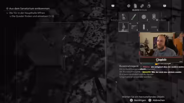 03:23:38Der Streamer erforscht mutierte Blutproben, die mit einem Lasermikroskop analysiert werden können. Durch diese Analyse erhält er Rezepturen für die Herstellung neuer Gegenstände wie Pistolenmunition und Hämolyse-Spritzen. Das Blutentnahmegerät spielt eine zentrale Rolle bei der Herstellung dieser Gegenstände, aber der Lagerplatz ist begrenzt, was zu strategischen Entscheidungen beim Aufbewahren und Verwenden von Ressourcen führt. Das Gameplay erfordert sorgfältiges Management der verfügbaren Materialien und Bluttypen.