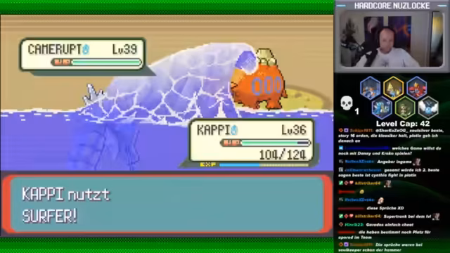 01:07:33Der Stream kehrt zum Hauptspiel zurück, der Hardcore Nuzlocke in Pokémon Smaragd. Das Team ist kurz vor dem siebten Orden. Ein tragischer Verlust ereignet sich, als das vielversprechende Pokémon Tohaido stirbt, was die Strategie für die Top 4 erheblich erschwert. Das Team wird neu bewertet und ein neues Mitglied, ein Schuppet mit dem Wesen hitzig, wird integriert. Der Streamer betont, dass er bei diesem Run die Originalspiele bevorzugt, um den Reiz der Challenge nicht durch zu viel Glück zu verlieren, wie es bei Random Nuzlocke der Fall sein kann.