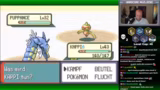 05:10:48Ein Duell gegen den Rivalen Heiko beginnt, bei dem man nur drei Pokémon mitnehmen darf. Durch geschickte Teamrotation, insbesondere durch den Einsatz von Banette und Garados, gelingt es, den Rivalen zu besiegen. Der Rivale besitzt ein starkes Team, darunter einen Gardelboy und einen Samurott, was den Kampf anspruchsvoll gestaltet. Das Spiel gewinnt an Dramatik durch kritische Treffer und strategische Wechsel.