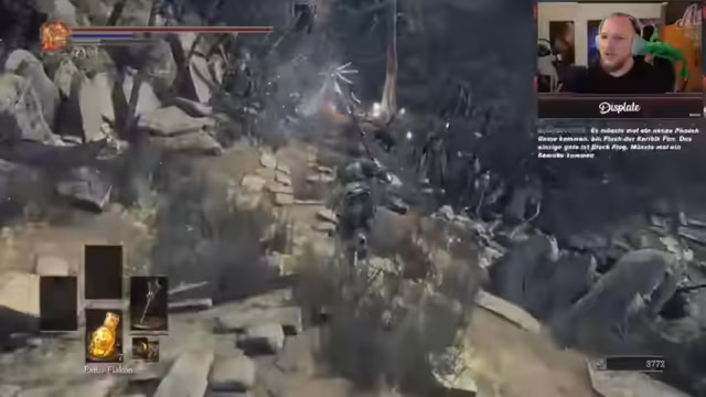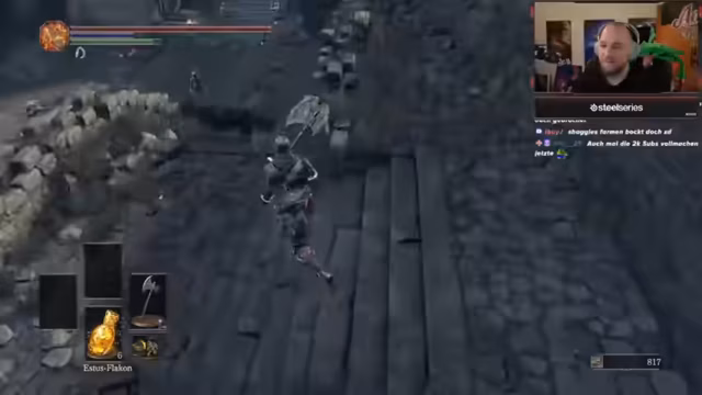 03:42:04Nach langer Zeit ist der Streamer zurück im heimischen Streaming-Setup und startet einen neuen Dark Souls 3-Livestream. Es ist das erste Souls-Game für den Streamer, welches er ursprünglich mit der Pyromantie-Starterklasse gemeistert hat. Nach Meinung des Streamers ist das Spiel anfangs linear und nur im DLC wirklich schwer. Er kündigt an, dieses Mal mit der Eiskeule durchzugehen und eine entspannte Session zu spielen, während er mit der Community interagiert.