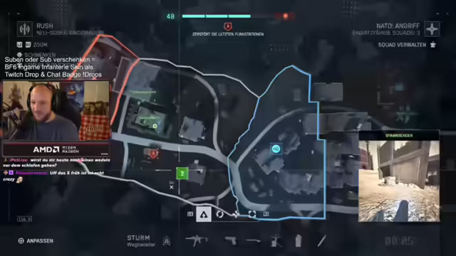 00:47:19Der Streamer teilt mit, dass er heute aufgrund von Setup-Problemen und einem emotionalen Gespräch nicht so euphorisch ist wie sonst, aber trotzdem streamen und Battlefield spielen möchte. Er bittet die Zuschauer um Verständnis und lädt sie ein, sich zu entspannen und unterhalten zu lassen. Er wiederholt die Ankündigung des Open-End-Streams am Wochenende, um seinen Schlaf zu regulieren, da dieser aktuell "vom Dämon besessen" sei. Er äußert sich kritisch über den hohen Schaden von MPs im Spiel und fragt die Community nach ihrer Meinung zur Waffenbalance. Später wechselt er zu einem anderen Spielmodus, Durchbruch, auf den er sich sehr freut. Er erwähnt auch eine Nachricht über Simon Desue, der angeblich wegen Drogenbesitzes oder -handels in Dubai im Gefängnis sitzt, und äußert seine strikte Null-Toleranz-Politik gegenüber Drogenhandel. Er betont, wie wichtig es ist, sich mit den richtigen Leuten zu umgeben und nicht wegen schnellem Geld auf zwielichtige Angebote einzugehen. Er freut sich auf kommende Inhalte in Battlefield 6 und hofft auf Maßnahmen gegen Cheater und Cronus-User.