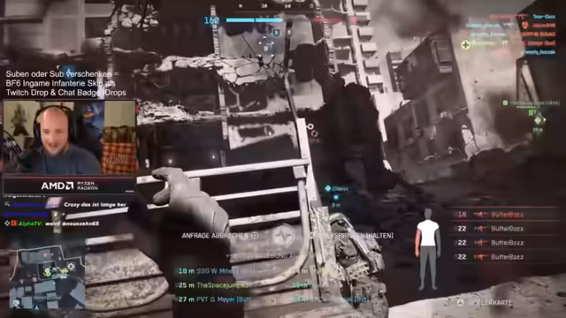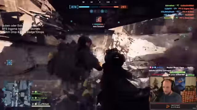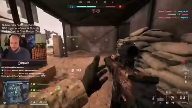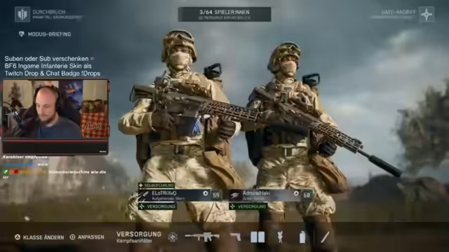 02:51:39Der Streamer fragt nach der Qualität von Discord auf der PS5 Pro, da sein Kollege Dave es benutzt. Er ist begeistert von einem neuen Waffen-Skin, der durch das Leveln der Waffe freigeschaltet wird. Um Striker wieder ins Team zu holen, verlässt er die Lobby. Im Menü bearbeitet er seine Spielerkarte und entdeckt verbuggte Dog-Tags, die falsche Statistiken anzeigen, wie zum Beispiel nur zwei zerstörte schwere Fahrzeuge oder sieben Wiederbelebungen an einem Spawn-Beacon. Die Spieler beschließen, eine "Durchbruch"-Runde zu suchen, um die vorherige Niederlage zu rächen. Es wird über die Effektivität verschiedener Waffen und Klassen diskutiert, wobei der Streamer seine Präferenz für Sturmgewehre äußert, obwohl diese im Spiel als unterpowert empfunden werden. Die Frustration über das Spiel und die Bugs bleibt bestehen, während die Spieler versuchen, die besten Strategien zu finden, um zu gewinnen.