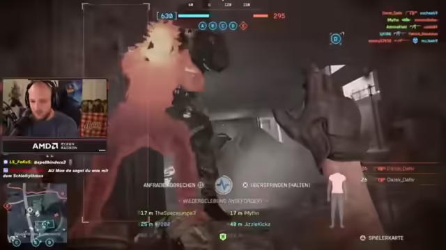 04:19:47Der Streamer empfiehlt seinen Zuschauern dringend, auf einen OLED-Monitor umzusteigen, sobald sie die finanziellen Mittel dazu haben, da dies ein absoluter 'Game Changer' sei. Er verspricht, dass das Spielen danach doppelt so viel Spaß mache und führt die dicken, ehrenlosen Sessions, die sie aktuell haben, auf seinen OLED-Monitor zurück. Währenddessen versuchen er und sein Team, auf hohe Positionen auf der Map zu gelangen, indem sie Leitern nutzen und sich gegenseitig helfen. Er beschreibt, wie sie sich wie 'Gerüstbauer' fühlen, um strategische Vorteile zu erzielen. Trotz der Bemühungen und der hohen Positionen kommt es immer wieder zu chaotischen Situationen, in denen Teammitglieder sterben und wiederbelebt werden müssen. Er kritisiert das Verhalten von Bots, die ihn nicht effektiv wiederbeleben können und beschwert sich über die schlechte Programmierung. Die Team-Dynamik ist von Humor und gegenseitigen Sticheleien geprägt, insbesondere zwischen ihm und Mytho, wobei sie sich über Kills und Wiederbelebungen austauschen.