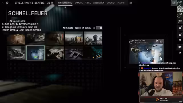 00:11:59Der Streamer beginnt mit dem Gameplay in Battlefield 6 und äußert sich begeistert über die Spotting-Tools in der Sniper-Klasse. Er listet verschiedene Tools auf, wie Fernglas, Drohne, Sniper-Spotting, Granaten und Bewegungssensor. Er erwähnt auch das Spawn-Beacon beim Soldaten und seine Freude über eine nette Begrüßung im Chat. Er plant, sich mit den anderen Streamern zu verbinden.