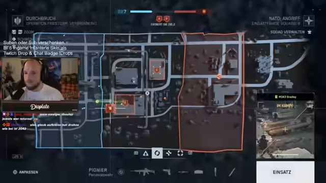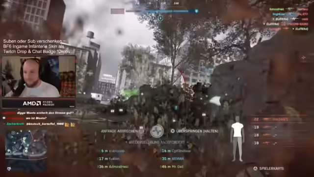 00:14:32Der Streamer informiert über eine aktive Sub-Aktion, bei der Zuschauer einen In-Game-Infanterie-Skin und einen Badge als Twitch-Drop erhalten, wenn sie einen Sub raushauen oder verschenken. Prime-Subs zählen leider nicht dazu. Er zeigt seine Begeisterung über das Spiel und die Möglichkeiten, die es bietet. Auch erwähnt er die Spawn-Beacon und deren Einsatz im aktuellen Modus.