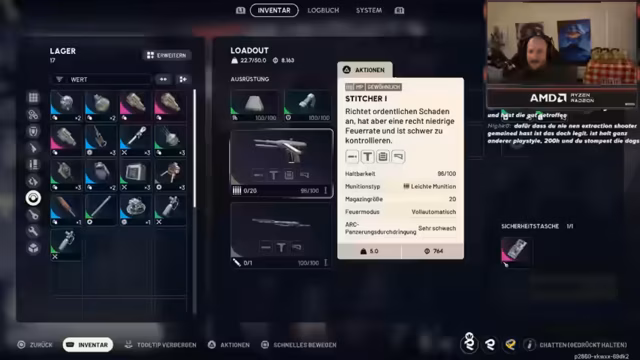09:52:35Die Spieler widmen sich der Inventarverwaltung und optimieren ihre Lagerbestände. Sie nutzen Funktionen wie das Zusammenführen von Stacks und das automatische Verschieben des Rucksackinhalts ins Lager, um Platz zu schaffen. Es wird diskutiert, welche Gegenstände verkauft oder recycelt werden sollten, um Metallteile oder andere Ressourcen zu gewinnen. Die Bedeutung des Traders für den Kauf von Magneten und einfachen Waffenteilen wird hervorgehoben, um blaue Augmente zu craften. Das System der Saatgut-Beschaffung durch das Recyceln von Pflanzen wird als cleveres System gelobt. Die Spieler nehmen alle verfügbaren Quests an, um zusätzliche Belohnungen und Ressourcen zu erhalten.