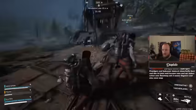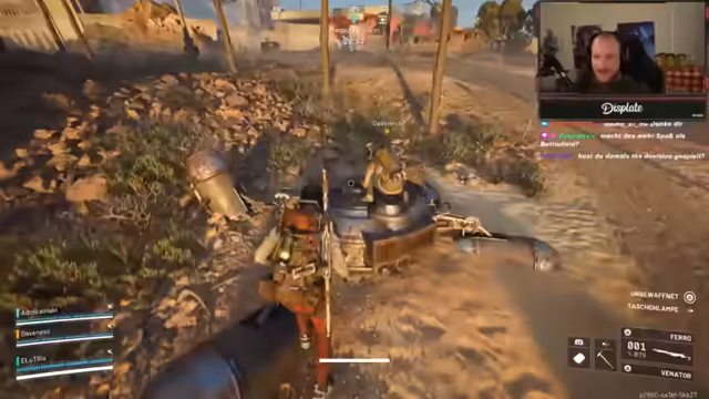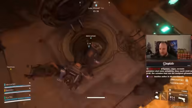 06:11:04Die Spieler diskutieren den Sinn des Spiels, der im Überleben, Leveln und Finden von besserem Loot besteht, um schließlich mit übermächtiger Ausrüstung in Missionen gehen zu können. Es wird betont, dass das Spiel sehr anspruchsvoll ist, sowohl durch die gefährlichen Maschinen als auch durch andere Spieler. Das Spiel wird als 'keine Kinderverarsche' beschrieben und erfordert Geschick, um erfolgreich zu sein. Ein Spieler, der sich selbst als nicht schlecht einschätzt, gibt zu, in diesem Spiel oft Schwierigkeiten zu haben. Die Optimierung des Spiels auf Konsolen wird gelobt, und es wird ein Rabattlink für die PC-Version des Spiels erwähnt, der sowohl dem Partner als auch dem Streamer zugutekommt. Nach Anforderung der Extraktion versteckt sich ein Spieler, um die Wartezeit zu überbrücken.