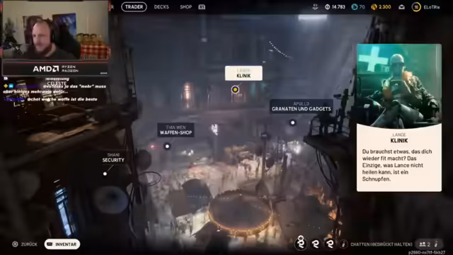 05:58:35Der Streamer erreicht Level 15 und schaltet damit 'Prüfungen' frei, die zusätzliche Grinding-Möglichkeiten und Belohnungen wie grüne und blaue Gegenstände sowie saisonale Loots bieten. Ab Level 20 kann man einen Van bauen, der einem Prestigemodus ähnelt und weitere Grinding-Aufgaben mit sich bringt. Die Suche nach bestimmten Ressourcen wie 'Lüftern' erweist sich als schwierig. Die kostenlosen Skins und der Grafikstil des Spiels werden gelobt. Der Streamer ist frustriert über das Krähen eines Hahns im Hintergrund und fragt, ob man ihn stummschalten kann. Er nimmt einen blauen Schlüssel mit in die Sicherheitstasche für eine Tryhard-Runde. Es wird überlegt, eine Bastion zu bekämpfen, um dem Chat die Intensität des Spiels zu zeigen, wofür jedoch bessere Ausrüstung benötigt wird. Die Möglichkeit, eine Trophäe durch das Töten von drei Gegnern mit einer Wolfpack-Granate zu erhalten, wird erwähnt. Der Streamer erhält einen Bauplan für eine Waffe, den Venator, bei Level 36. Die anhaltende Suche nach einer Zitrone für ein Upgrade seines Hahns wird als frustrierend beschrieben. Ein neuer Skill, der die Ausdauerregeneration beim Gehen verbessert, wird freigeschaltet. Eine neue Quest, die das Erreichen einer Lichtung und die Suche nach Hinweisen auf zerstörte ARC-Maschinen beinhaltet, wird angenommen. Das Problem eines vollen Lagers und die Frage, welche Items verkauft werden können, werden diskutiert. Die Motivation der Spieler, das Spiel intensiv zu zocken, wird hervorgehoben, und es wird die Möglichkeit erwähnt, sich selbst Aufgaben zu setzen, wie das Zerstören von Bastionen oder PvP-Kämpfe.