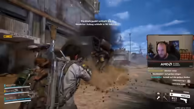 06:21:49Der Streamer äußert den Wunsch, Battlefield Battle Royale regelmäßig im Stream zu spielen und besser darin zu werden, da er bald an einem 250.000 Dollar Turnier teilnehmen wird. Ein Freund verspricht, ihn dabei zu begleiten. Es wird auch über die Möglichkeit gesprochen, dass eingeladene Creator Teams für das Turnier bilden können. Die Spieler bereiten sich auf eine weitere Runde in ARC Raiders vor, wobei sie sich über fehlende Verbände und die allgemeine Schwierigkeit des Spiels austauschen. Es wird die Frage aufgeworfen, ob ARC Raiders zu einem Main-Game werden könnte, da es gut bei der Community ankommt. Die Spieler diskutieren über Gerüchte bezüglich des Turniers und die Notwendigkeit, zu trainieren. Sie betonen die Wichtigkeit von Teamwork und Strategie, insbesondere beim Umgang mit Flankenangriffen und der Nutzung von Deckung.