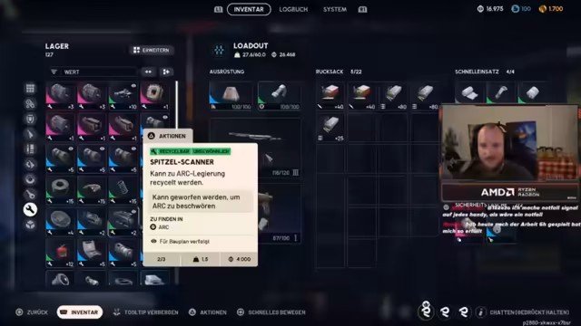 07:56:44Die Spieler stehen vor der Herausforderung des Inventar-Managements und der Entscheidung, welche Gegenstände zerkraftet oder verkauft werden sollen. Es wird diskutiert, dass Magneten und Akkus für das Crafting von blauen Augmenten und Arc-Legierungen wichtig sind und daher nicht recycelt werden sollten. Verrostetes Werkzeug und Kühlungslüfter sind ebenfalls wertvolle Ressourcen, die man nicht leichtfertig verkaufen oder zerkraften sollte, da sie für Upgrades benötigt werden. Die Spieler lernen aus ihren Fehlern, da sie am Anfang viele wichtige Items zerkraftet haben, ohne deren Wert zu kennen. Es wird empfohlen, Gegenstände wie Flöten oder Flammensprays zu verkaufen, wenn sie nicht gestapelt werden können und wenig Nutzen haben, obwohl Flammenspray gegen den Springer nützlich sein kann. Die Gruppe plant, einen Kanonier zu besiegen, der Raketen über die ganze Map schießt, bevor sie die Nachtmission angehen. Die Wichtigkeit, Loot-Spots vollständig zu durchsuchen, um alle Erfahrungspunkte zu erhalten, wird betont, da pro Teil eines großen Roboters 500 EP vergeben werden. Die Spieler sind motiviert, die größten Gegner im Spiel zu besiegen und suchen nach Zitronen, die für Upgrades benötigt werden.