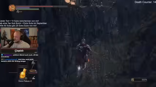 00:06:10Der Streamer begrüßt die Zuschauer in den Chat und startet direkt mit dem Spiel Dark Souls 3. Er erwähnt verschiedene Viewer und deren Support, sowie persönliche Updates. Dazu zählt, dass er auf Madeira wohnt und sich wegen einer Erkrankung noch in Genesung befindet, weshalb er die aktuelle Woche Sportpause machen muss. Geplant sind tägliche Streams für die kommenden Spiele Ghost of Yotai und Battlefield 6.