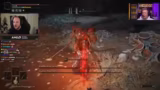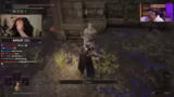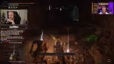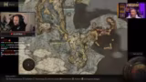 03:32:58Um die Spielwelt weiter aufzudecken, wird ein Tipp aus dem Chat umgesetzt. Schradin muss die Karte öffnen und in einem Halbkreis schnell mehrere Marker setzen, um die maximale Anzahl zu erreichen. Anschließend werden alle Marker einzeln wieder gelöscht, wodurch die gesamte umliegende Gemarkung freigeschaltet wird. Anschließend navigieren die beiden zu einem Bonfire, um sich auf den bevorstehenden Bosskampf vorzubereiten und den Boss durch den Aufenthalt am Bonfire zu resetten.