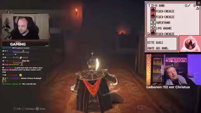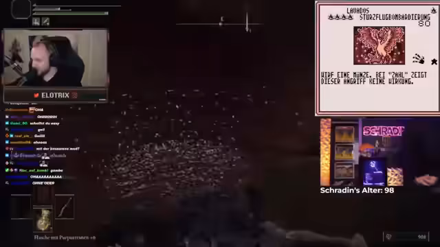 02:14:11Es wird über den Weg zu einem bestimmten Boss in Elden Ring gesprochen, wobei der Chat Ratschläge gibt. Der Streamer äußert den Wunsch, den Zuschauern zu gefallen, indem er bestimmte Bosse besiegt. Es wird über die Schwierigkeit des bevorstehenden Bosskampfes diskutiert, und der Streamer äußert Bedenken, dass er den Boss nicht besiegen kann. Es wird auch über die Bedeutung bestimmter Gegenstände und Buffs im Kampf gesprochen. Der Streamer bereitet sich auf den Bosskampf vor, indem er verschiedene Buffs aktiviert und seine Waffe verbessert. Es wird erklärt, wie man die Waffe mit Blut verstärkt und welche Vorteile das bringt. Der Streamer ist unsicher, ob er die richtigen Schritte unternimmt, aber er vertraut auf die Anweisungen des Chats.