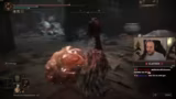 00:59:22Der Streamer zeigt Frustration über die hohe Schadensoutput der DLC-Bosse, selbst auf hohem Level. Er hat keine Lust, die Bosskämpfe zu 'tryharden' und möchte den Run eher gemütlich durchziehen. Dennoch ist er beeindruckt von der Stärke der Chicken-Leg-Waffe, die er trotz der Herausforderungen weiter einsetzt. Er erwähnt kurz die Fortschritte anderer Streamer, wie einen erfolgreichen Godrun.