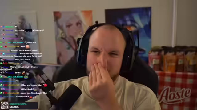 00:17:24Es werden zwei A-Oste-Pakete für ein Gewinnspiel angekündigt. Aoste hat sich gemeldet, um als Partner für die Gamescom LAN dabei zu sein. Um dies zu erreichen, werden die Zuschauer gebeten, Aoste zu unterstützen. Es wird ein Gewinnspiel im Chat und auf dem Discord angekündigt, bei dem Bilder mit einer A-Oste-Packung und dem Stream im Hintergrund gepostet werden sollen. Es wird betont, dass man sich nicht extra eine Packung kaufen soll, nur um am Gewinnspiel teilzunehmen. Es wird der Discord-Kanal für das Aoste-Gewinnspiel vorgestellt, wo bereits Beispielbilder gepostet wurden. Es wird über die verschiedenen Geschmacksrichtungen von Aoste gesprochen und die Classic-Variante bevorzugt. Ein Zuschauer fragt, ob ein Bild mit einer leeren Packung auch zählt, was bejaht wird. Es wird erwähnt, dass das Gewinnspiel auf dem Discord in etwa einer Woche stattfinden wird, sodass genug Zeit ist, sich eine Packung zu besorgen. Es wird erklärt, wie das Foto für das Gewinnspiel aussehen soll: Aoste-Packung in der Hand mit dem Stream im Hintergrund.