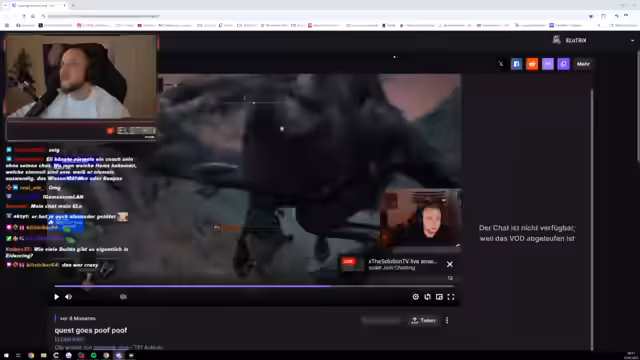 04:41:16Der Streamer beschäftigt sich intensiv mit dem Gameplay von Elden Ring und teilt seine Frustration über einen Bosskampf aus. Er ist verärgert, dass die Fackel des Bosses Godric nicht lange genug fackelt und der Boss einen Handabhack-Move hat, der den Streamer zornig macht. Der Streamer kommentiert das Spielgescheiven live, gibt Tipps und reagiert auf die Aktionen im Spiel, oft mit emotionalen Ausbrüchen und humorvollen Kommentaren.