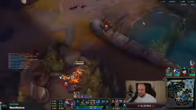 07:12:49Während des Spiels zeigt der Streamer massive Frustration über das eigene Spiel, insbesondere über eine verpasste Ultimate. Er beschuldigt seinen Mitspieler Danny, zu "tilten", und kritisiert die fehlende Map-Awareness und das schlechte Play des Teams. Die Situation eskaliert, als der Streamer einen Chat-Spamer ("Spellbeiner") massiv beleidigt und mit einem Bann droht. Er beklagt, dass er nie einen Mid-Laner hat, der Objektives sichert, und spricht von einer "Elo-Hölle".