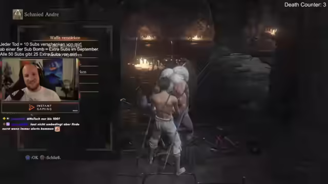 02:21:11Es wird eine Dark Souls 3 Challenge gestartet, bei der der Charakter nackt spielt. Scherzhaft wird auf eine mögliche OnlyFans-Karriere angespielt, falls das Streaming nicht mehr laufen sollte. Es wird betont, dass dies nur ein Scherz sei. Es wird kurz über OnlyFans-Inhalte gesprochen und festgestellt, dass diese immer noch präsent sind. Der Streamer äußert sich zu Kommentaren über seinen vermeintlichen 'Downfall' und erklärt, dass er nicht regelmäßig streamt, da er viel unterwegs ist und Urlaub macht. Es wird ein Deathcounter eingebaut und angekündigt, dass bei jedem Tod im Spiel 10 Subs verschenkt werden. Außerdem werden alle 50 verschenkten Subs zusätzlich mit 25 Subs aus eigener Tasche belohnt. Es wird die beste Klasse für den Nackt-Run diskutiert und sich für den Assassinen entschieden. Der Streamer macht sich im Spiel nackt und scherzt über eine OnlyFans-Karriere.