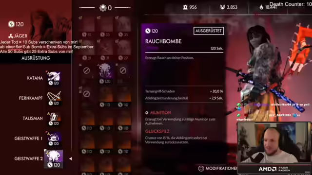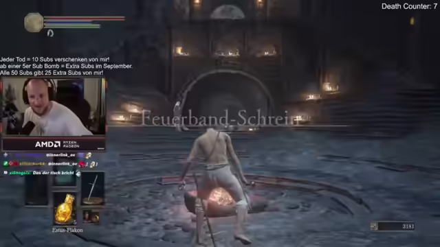 00:05:50Der Stream beginnt mit Grüßen an die Zuschauer und der Ankündigung, dass nachher eine kleine Souls-Challenge stattfinden wird, bei der die Zuschauer zwischen Sekiro, Elden Ring oder Dark Souls 3 wählen können. Dabei soll der Streamer nackt mit einer legitimen Waffe spielen und bei jedem Tod 10 Subs verschenken. Zudem wird auf eine Rabattaktion von 40% bei DisplayDuele am 3. Oktober hingewiesen. Es wird erwähnt, dass es im September dicke Rabatte auf Subs und Sub-Bombs gibt und die Zuschauer überprüfen sollen, ob dies auch für Re-Subs gilt. Der Streamer spricht über die Möglichkeit, als Abonnent im Stream zurückzuspulen und erklärt, dass dies für Turbo-Nutzer verfügbar ist. Er bedankt sich bei zahlreichen Zuschauern für ihre Subs und Unterstützung und geht auf die Frage ein, wann er wieder Elden Ring mit Jack spielen wird, wobei er vorschlägt, dies Ende nächsten Monats anzugehen, da er sich erst einmal Battlefield widmen möchte. Es wird auch die Möglichkeit eines Code Vein Runs angesprochen.