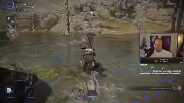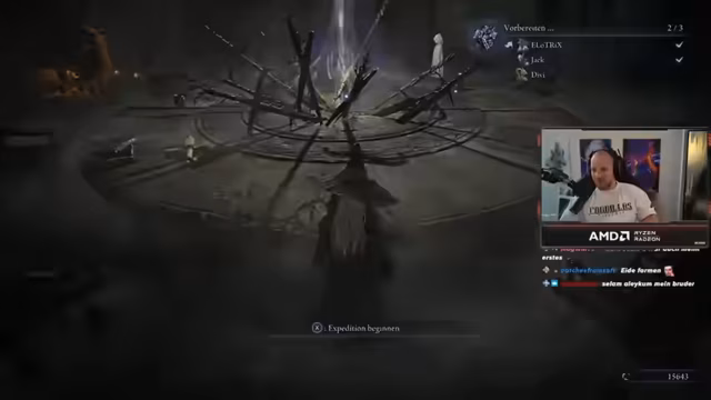 03:26:43Der Streamer teilt mit, dass sein Setup mit dem Blitzschaden nun komplett ist und er nichts mehr braucht. Das Ziel ist es, für Divi und Carsten die letzten Schlüsselelemente zu finden: einen guten Bogen und einen starken Zauber. Die Strategie sieht vor, in der Nähe des Bosses eine Kirche zu looten und dann den Kampf zu beginnen. Ein zentrales Taktik-Tipp für den Boss wird verraten: Man sollte sich immer rechts von ihm halten, um den blauen Armangriff auszuweichen.