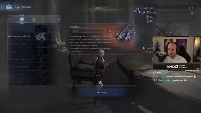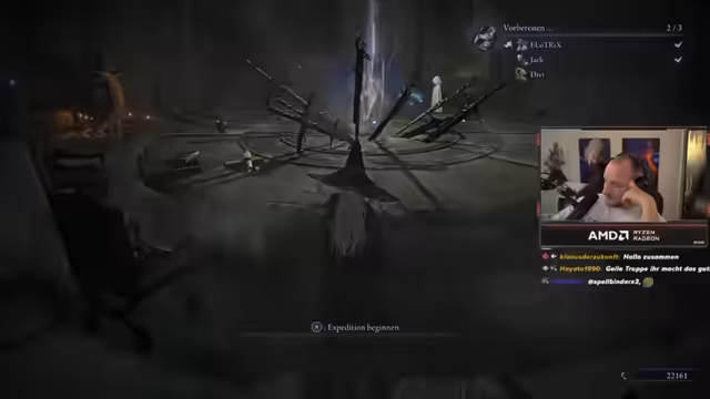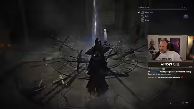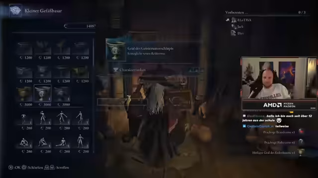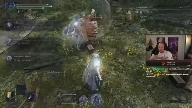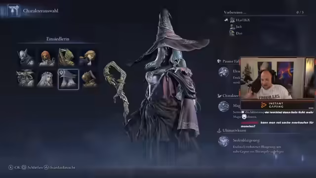 07:05:56Die Streamer planten, in der aktuellen Runde die Gespensterfrau zu spielen und benötigte Items wie Siegel mit starken Zaubern, Anrufungen zur Erhöhung der Angriffskraft sowie Händler für Waffenaufwertungen. Trotz der Vorfreude auf den Platin-Grind und die agilere Spielweise der Klasse wurde der Bedarf an weiterer Ausrüstung betont, wie Siegel zur Verstärkung von Beschwörungen. Der Fokus lag darauf, gemeinsam zu agieren und sich nicht zu verlieren, um den Run erfolgreich zu gestalten.