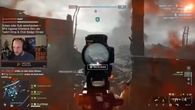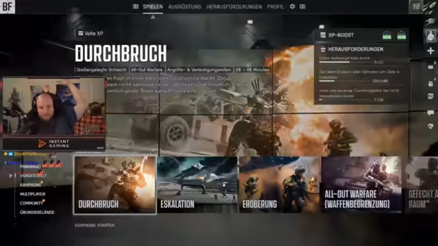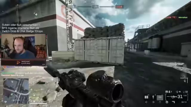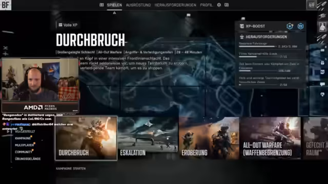 09:41:27Der Streamer hat bereits 34 von 100 Longshots für seine Challenge gesammelt, was einem Drittel entspricht. Er bedankt sich bei der Community für die konstante Unterstützung und die hohe Zuschauerzahl von fast 4000 Viewern, die er als „Macher-Community“ bezeichnet. Die Spieler landen erneut auf ihrer „Lieblings-Map“ Mirak-Teil, was zu gemischten Gefühlen führt. Es wird humorvoll über Müdigkeit und doppelte Sicht gesprochen. Die 11.000 Abonnenten werden erreicht, und der Streamer bedankt sich für den Support. Es wird erneut der Wunsch geäußert, dass die Lobby mit Bots aufgefüllt wird, um die Challenge einfacher zu machen, da Battlefield als „tot“ empfunden wird und nur noch wenige Spieler online sind. Die Spieler versuchen, die Bots zu manipulieren, indem sie die Eroberungspunkte nicht einnehmen, um die Runde zu verlängern und mehr Longshots zu sammeln.