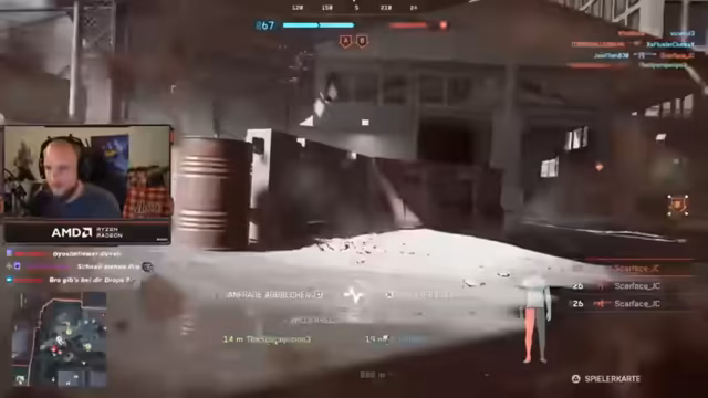 14:25:39Der Streamer kämpft mit einer unpräzisen Waffe und muss erst einige Freischaltungen erreichen, um sie effektiver nutzen zu können. Er beklagt, dass ein bekannter Bug, der das sofortige Ausrüsten neu freigeschalteter Gegenstände verhindert, immer noch nicht behoben wurde, was die Spielerfahrung erheblich beeinträchtigt. Trotz der Schwierigkeiten mit der Waffe und dem Visier, erkennt er ihr Potenzial, besonders bei Kopftreffern. Die Map wird als chaotisch beschrieben, da er oft schon beim Spawn unter Beschuss gerät. Er äußert seine Freude über die Möglichkeit, bestimmte Waffen im Spiel nutzen zu können, insbesondere eine legendäre Waffe aus Battlefield 3, die ihm nostalgische Gefühle bereitet.