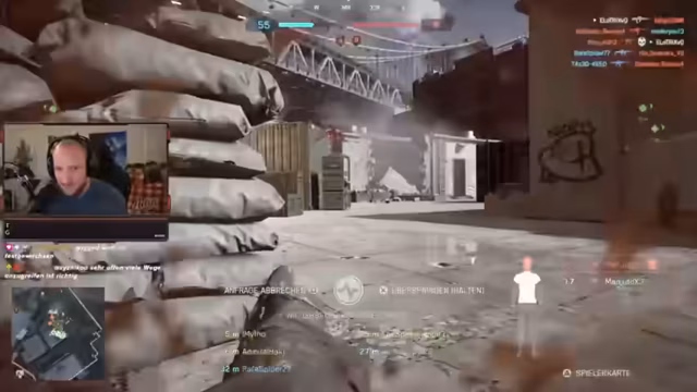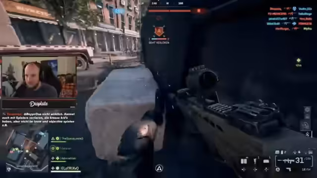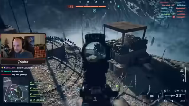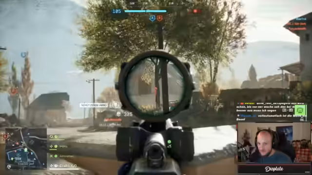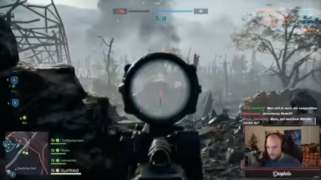 16:24:42Ein Spieler äußert den Wunsch, der beste Sniper in Battlefield zu werden, und bezeichnet sich selbstironisch bereits als den besten Spieler Deutschlands. Es wird jedoch schnell klar, dass die Leistung nachlässt und die Spieler frustriert sind über bestimmte Gameplay-Elemente wie das Spawnen oder die Übermacht von Gegnern. Die allgemeine Stimmung ist geprägt von Ermüdung und dem Wunsch, das Spiel zu beenden, trotz der anfänglichen Ambitionen.